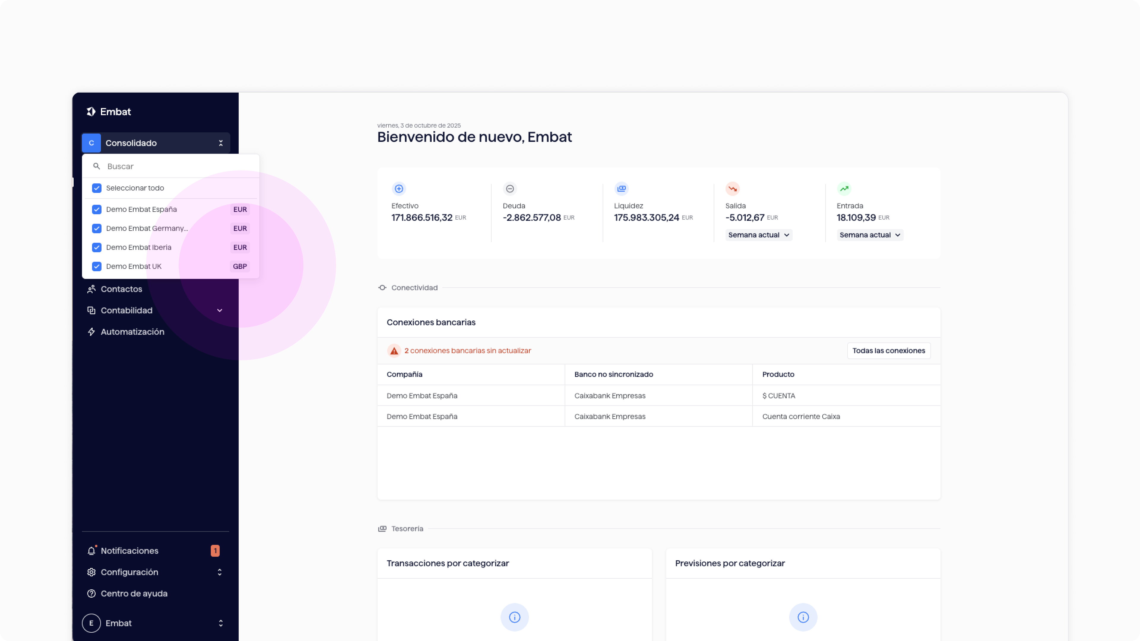 (Todos los saldos están en la moneda del producto bancario, y actualmente la herramienta sólo tiene en cuenta los asientos contables en esa moneda).